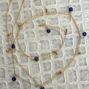 Delicate gold fill chain with tiny evil eye beads – extra long can be worn double or triple strand