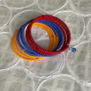 Beaded spiral bracelet in Armenian flag colors of red, blue, orange